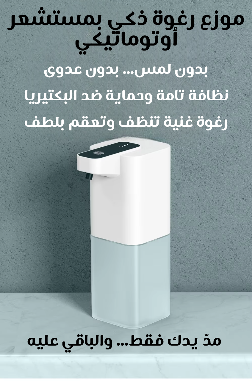 اغسل يديك بسهولة وبدون لمس مع موزع الرغوة الذكي! بمجرد اقتراب يديك، يطلق الجهاز رغوة غنية وناعمة تنظف بعمق وتمنحك حماية فعالة ضد البكتيريا. تجربة نظافة فاخرة وآمنة بلمسة واحدة... بدون لمس.